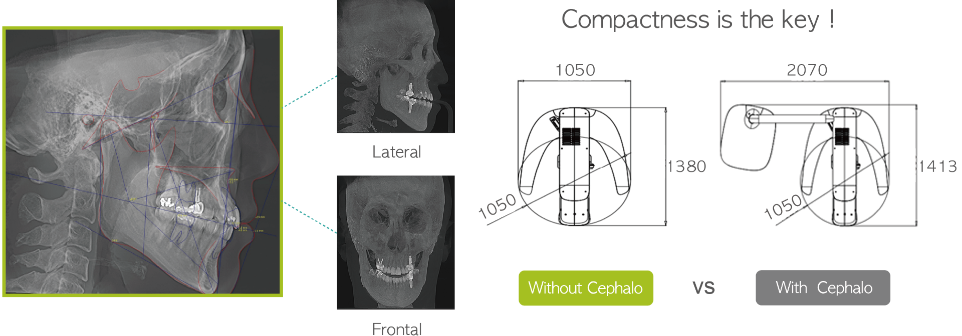 バーチャルのセファロ画像は1回の3Dスキャンで生成でき、空間効率を向上させます。