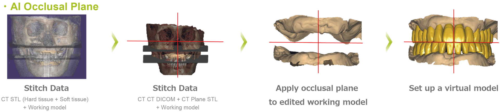CT STLファイルを使用すると、咬合平面を簡単にチェックしながら設定が可能です。